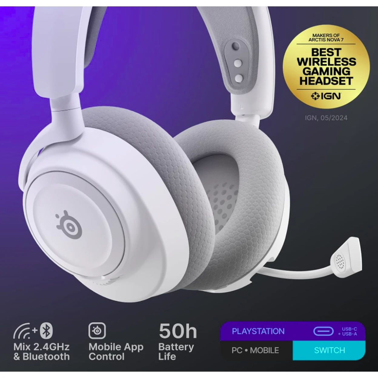 The SteelSeries Arctis Nova 7P Gen 2 Wireless Gaming Headset delivers immersive 7.1 surround sound and is designed for seamless use across PlayStation and other platforms.