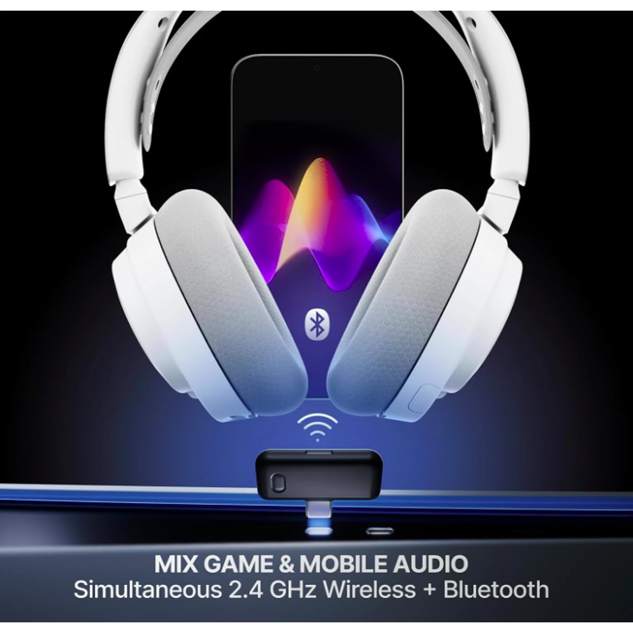 Dual connectivity using 2.4 GHz and Bluetooth allows for continuous gaming while taking calls or listening to music.