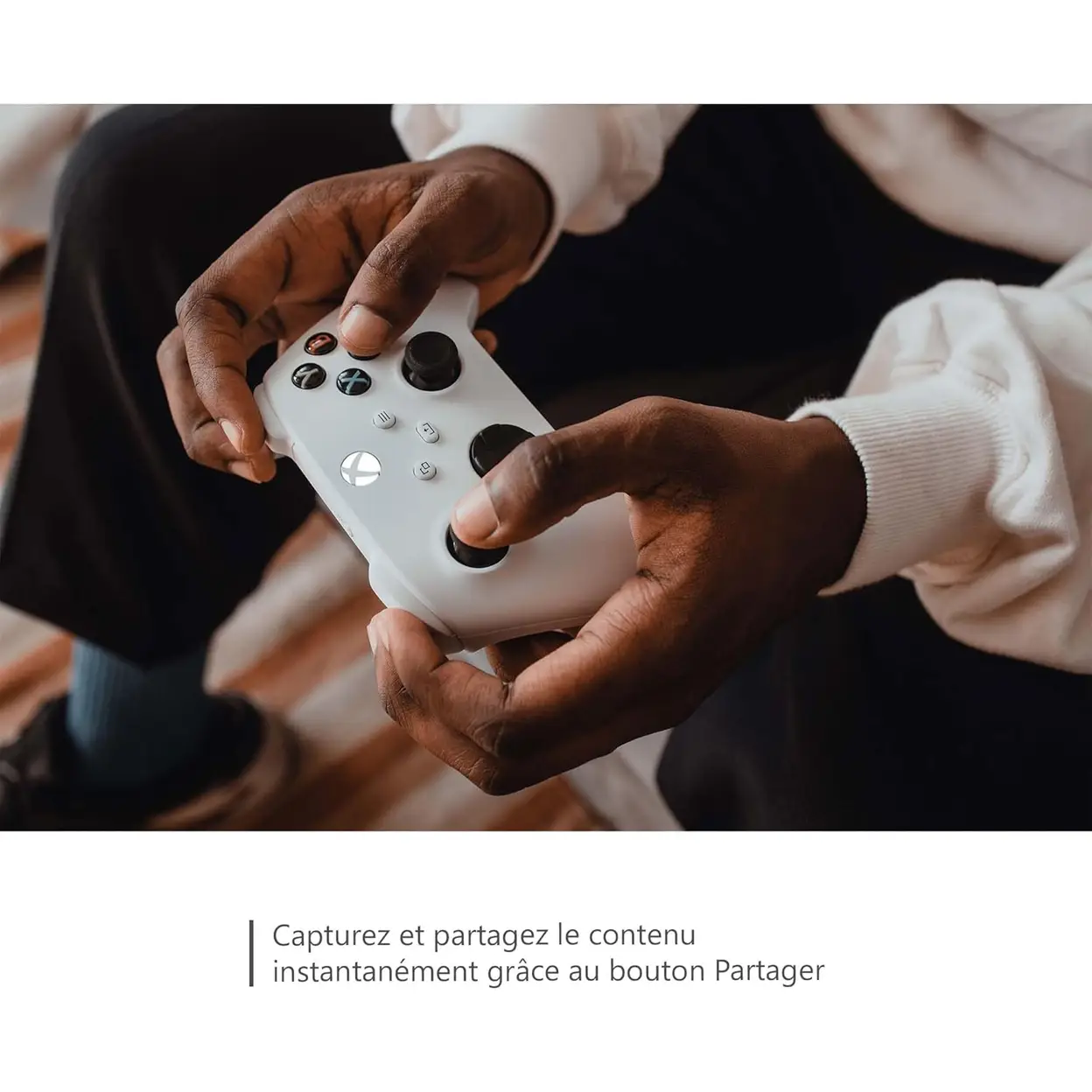 Product description With its revised design, the Xbox Wireless Controller not only feels great in the hand, but is also pleasing to the eye. A key change compared to the previous Xbox Controller is its ability to accommodate a wider range of hand sizes, especially smaller hands, without negatively impacting handling for those with larger hands. Many features have been made slightly rounder, hard edges have been avoided, some parts have been made smaller, and the grips have been carefully shaped. A dot pattern has also been added to the shoulder and trigger buttons for even better grip. A similar, but more subtle pattern can be found on the grips. The hybrid D-pad, which combines a round and classic D-pad, makes it easier to hit diagonals or make fluid circular movements. The D-pad, shoulder, and trigger buttons now also have a matte finish. This ensures a smooth feel, whether your hands are wet or dry. Sharing epic in-game moments is an important element of interaction and should be as easy as possible. The Share button now allows gamers to take photos and videos directly without a separate menu. You can then easily access and share the content with your favorite social media platforms or friends. Another highlight is the compatibility and connectivity. The controller can now remember multiple devices, allowing seamless switching between Xbox Series X|S, Xbox One, PC, Android, or iOS devices. Extensions that use the bottom of the controller, such as the chatpad or a headset, also continue to work without issues.