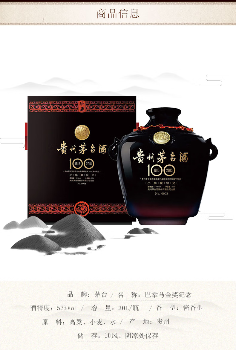 Moutai (MOUTAI) 53% Feitian Moutai Panama International Gold Award Small Black Jar Commemorative Wine Maotai-flavor Liquor Large Jar Wine 53% 30L 1 Jar (60 catties black jar)