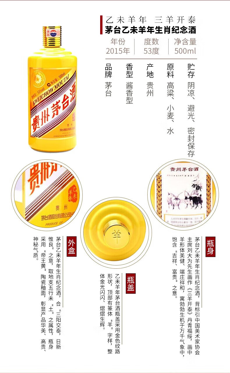 Moutai (MOUTAI) Zodiac Commemorative Wine 53% 500ml 53%vol Feitian Moutai Guizhou Maotai Liquor Collection Series 500mL 2 bottles Year of the Goat Zodiac Wine 2 bottles