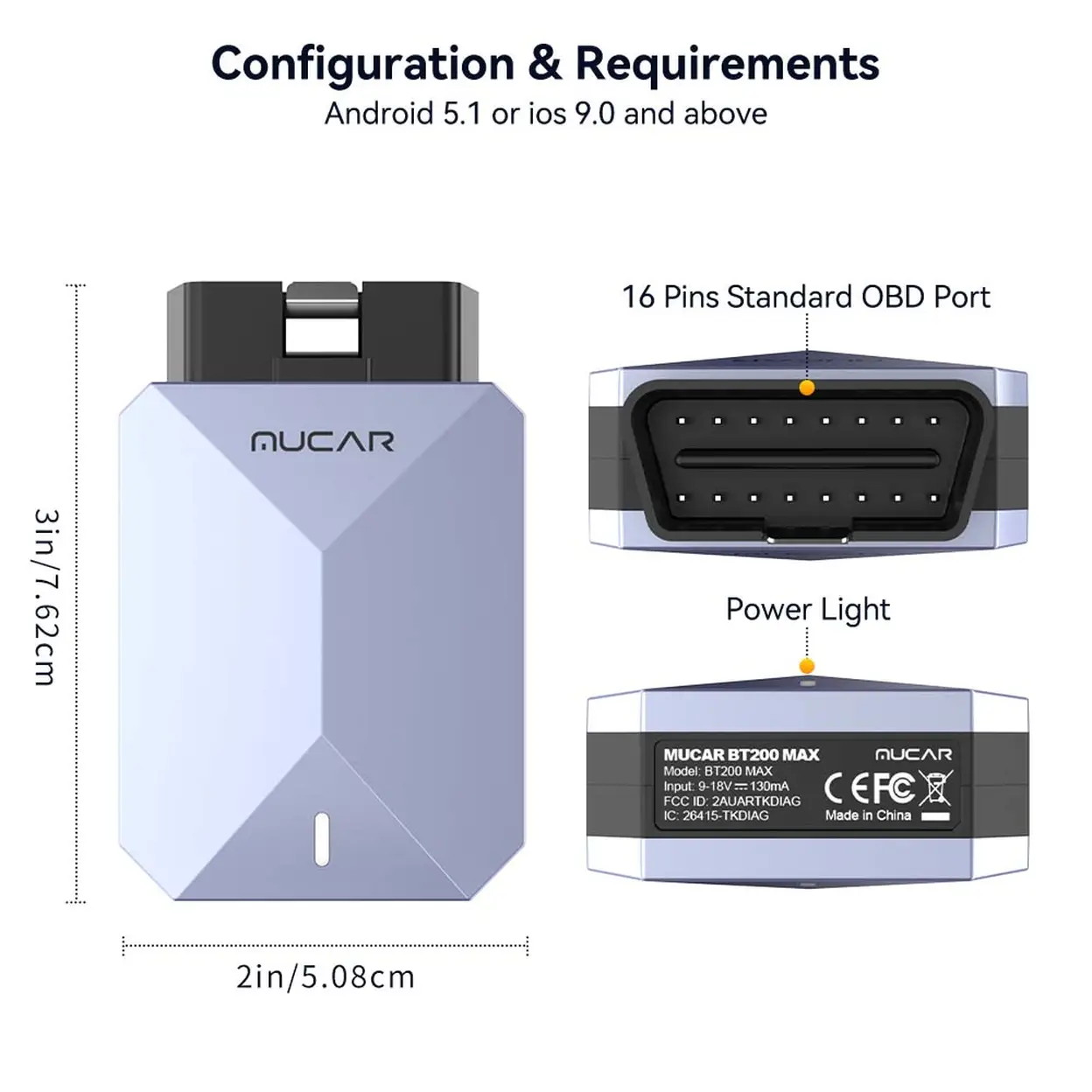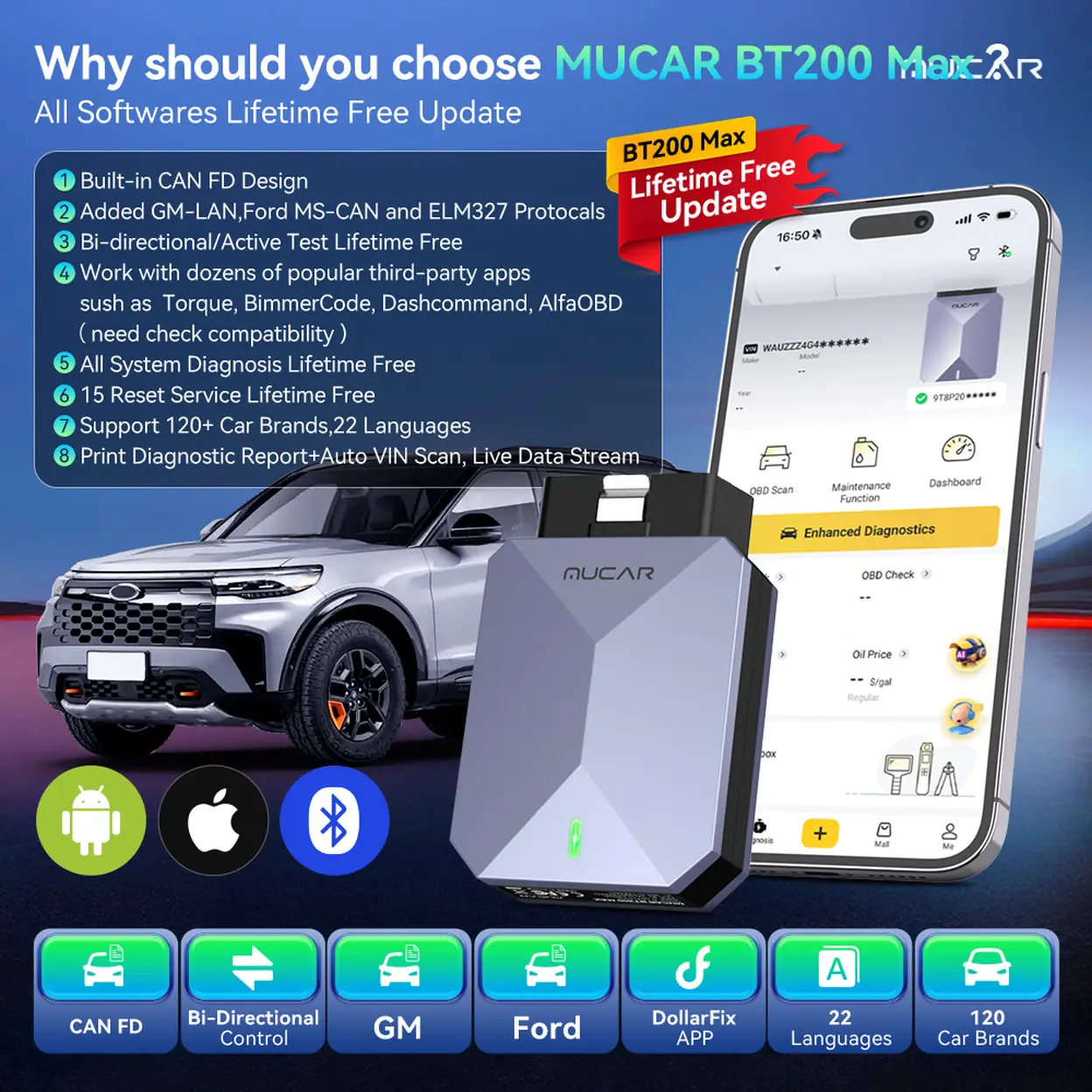 Enjoy lifetime software updates at no extra cost. Works with 22 languages and supports popular third-party apps such as Torque Pro and Car Scanner. Bluetooth connection supports Android 5.1+ and iOS 9.0+.