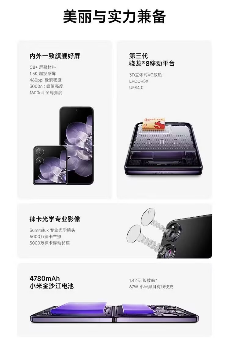 New products listed Xiaomi MIX FIip Quan Netcom 5G third generation Snapdragon 8 game camera smart folding mobile phone.