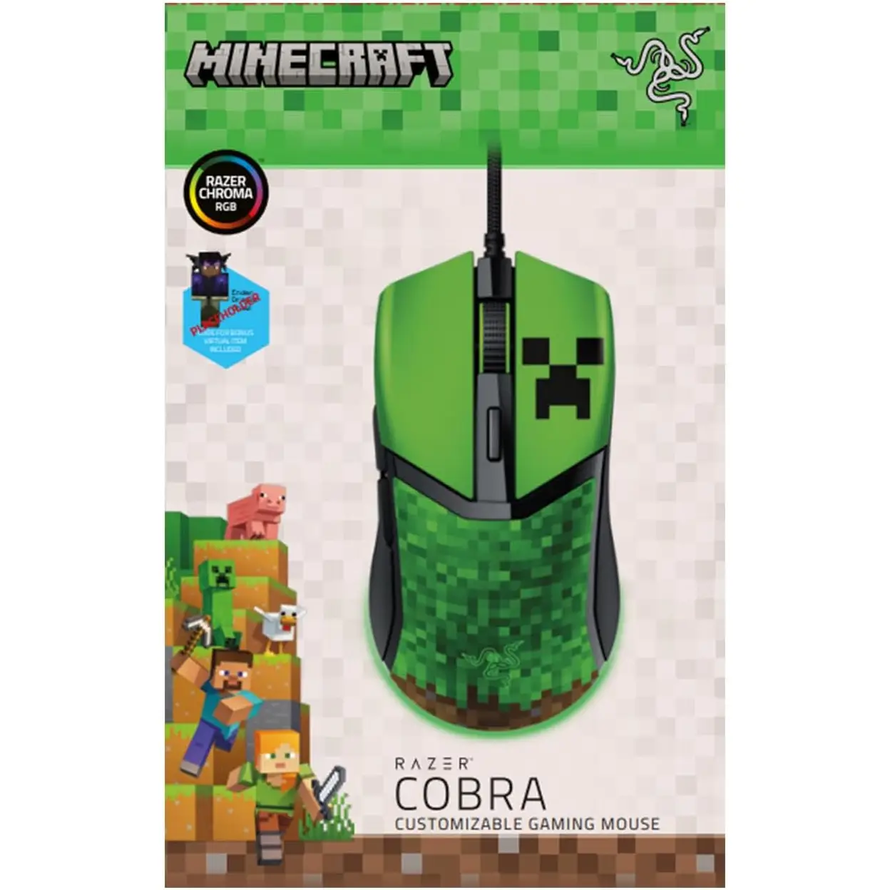Creepin' it real—truly live the block life with Razer's officially licensed gaming mouse for Minecraft. The Razer Cobra Wired Gaming Mouse - Minecraft Edition brings the iconic pixelated world to Razer's acclaimed lightweight design, featuring an authentic Creeper aesthetic with block-themed accents. Built for both Minecraft enthusiasts and competitive gamers, this special edition mouse combines beloved franchise style with esports-grade performance. The ultra-lightweight 58g symmetrical ambidextrous design fits most grip styles comfortably during long gaming sessions, whether you're mining deep underground or battling the Ender Dragon. Equipped with Gen-3 Optical Mouse Switches rated for 90 million clicks and a blistering 0.2ms actuation time, it eliminates double-clicking issues while delivering unrivalled durability and speed. Fine-tune your precision with sensor adjustments in 50 DPI increments, and glide effortlessly across any surface with 100% PTFE mouse feet. The Razer Speedflex Cable minimizes drag for quicker, more fluid swipes, while Chroma RGB lighting with gradient underglow offers 16.8 million colors and countless effects—including exclusive Minecraft-themed lighting that reacts dynamically with hundreds of Chroma-integrated games. Optimize accuracy via Windows settings and further customize performance using the Razer Synapse App.