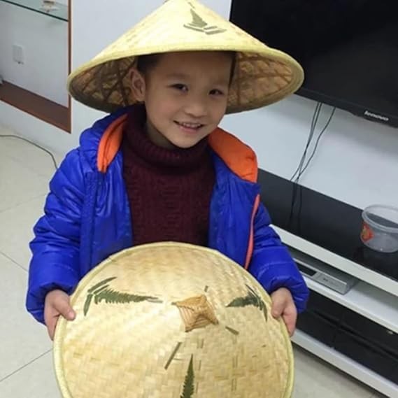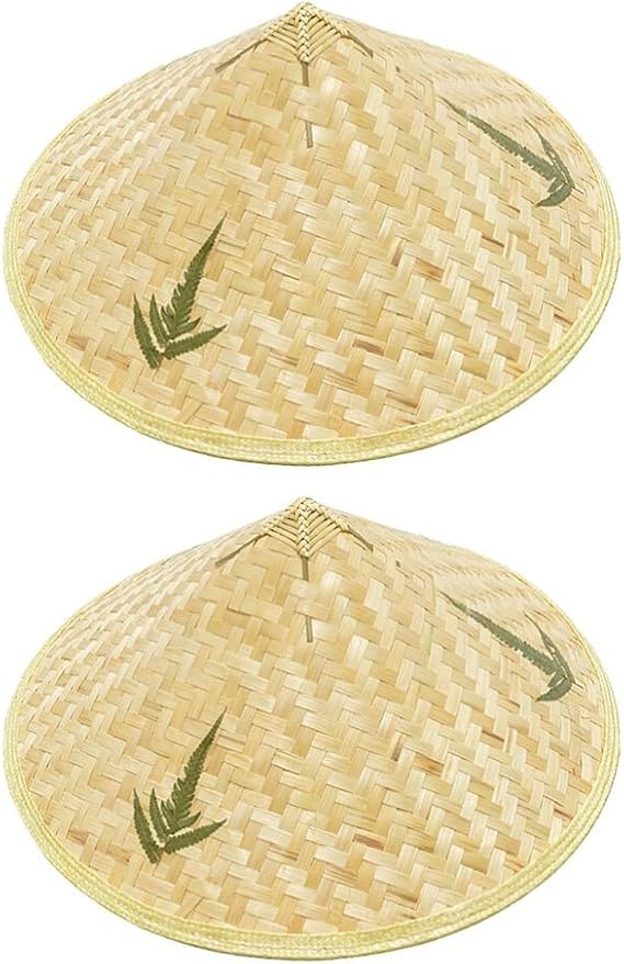 SAFIGLE 2Pcs Chinese Straw Hat:Bamboo Woven Vietnamese Hats for Kids & Adults - Japanese Weave Straw Cap for Women Photography Prop Hand-Knitted Cap Asia 14.17 Inch Diameter