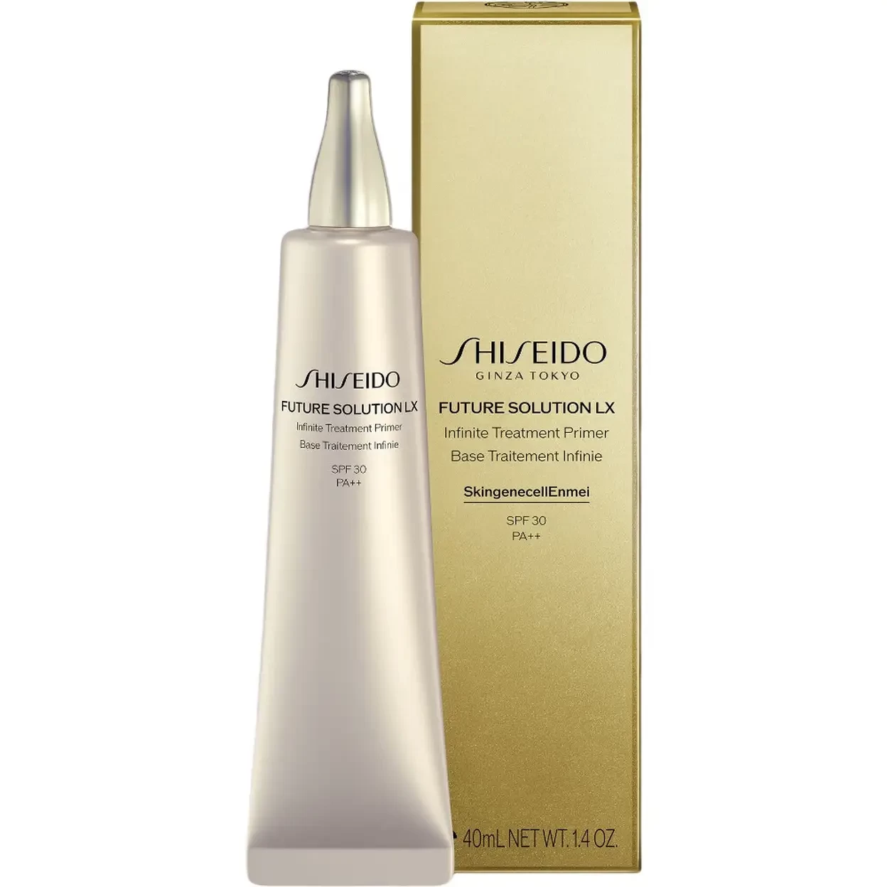 The Shiseido Future Solution LX Infinite Treatment Primer is a luxurious, dual-purpose product that enhances your skincare and makeup routine. With broad-spectrum SPF 30, it offers essential protection against air pollution and oxidative damage. This primer smooths pores, controls excess sebum, and corrects uneven skin tone, leaving your complexion with a radiant, pearlescent glow. Its lightweight, dewy texture provides eight hours of hydration, ensuring your skin remains moisturized and fresh throughout the day. Ideal for all skin types, this non-comedogenic formula is perfect for achieving a flawless, long-lasting makeup finish.