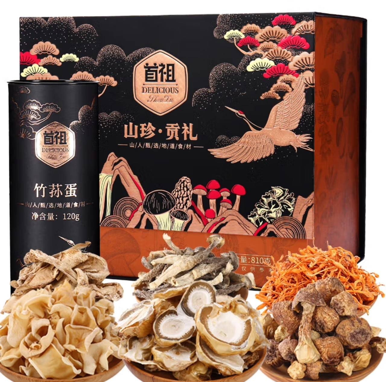 Shouzu Shanzhen Dried Mushroom Gift Box, Gift Holiday Gift Box. Give to customers, elders and friends 810g
