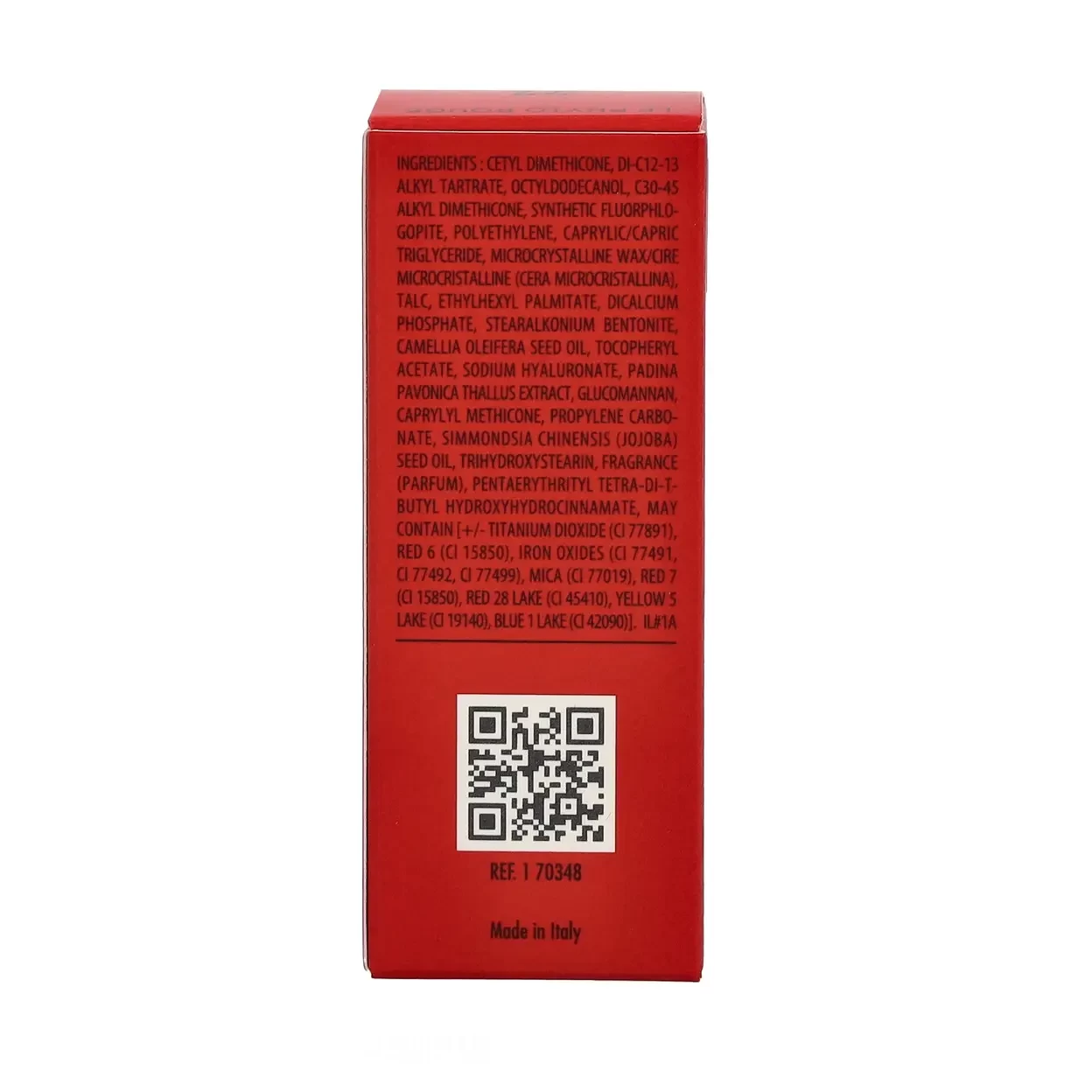 Cetyl Dimethicone, Di-C12-13 Alkyl Tartrate, Octyldodecanol, C30-45 Alkyl Dimethicone, Synthetic Fluorphlogopite, Polyethylene, Caprylic/Capric Triglyceride, Microcrystalline Wax.(Cera Microcristallina), Talc, Ethylhexyl Palmitate, Dicalcium Phosphate, Stearalkonium Bentonite, Camellia Oleifera Seed Oil, Tocopheryl Acetate, Sodium Hyaluronate, Padina Pavonica Thallus Extract, Glucomannan, Caprylyl Methicone, Propylene Carbonate, Simmondsia Chinensis (Jojoba) Seed Oil, Trihydroxystearin, Fragrance (Parfum), Pentaerythrityl Tetra-Di-T-Butyl Hydroxyhydrocinnamate