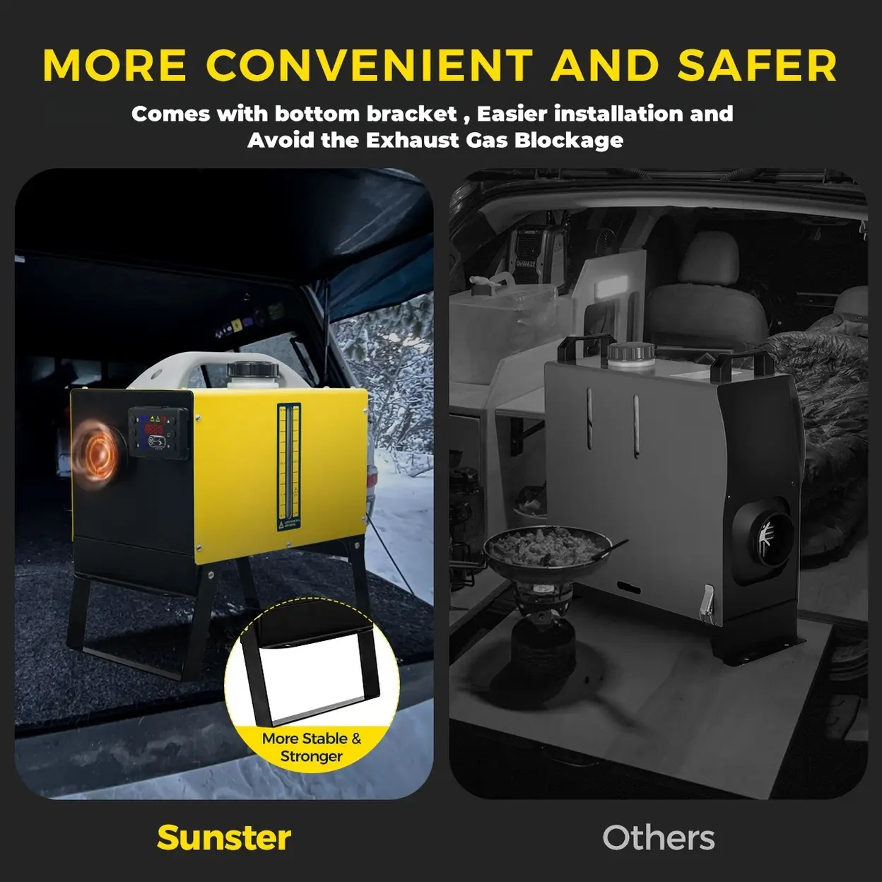 ✅【Comes with base bracket】 Our heater Equipped with a 140mm base bracket,Easier installation and to prevent the common issue of exhaust gas blockages, ensuring uninterrupted warmth.