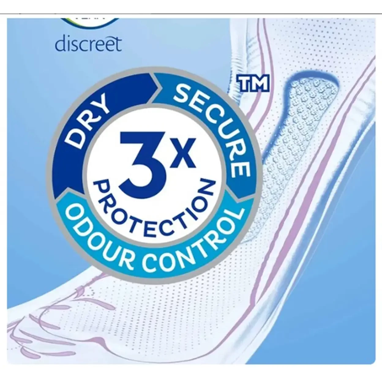 This product Tena Discreet Extra 10 Pads provides maximum security for those experiencing medium, unexpected urine leaks. The instaDRY™ zone instantly draws liquid away from the skin deep into the pad, ensuring long-lasting dryness up to 12 hours. With Triple Protection from leaks, odour and moisture, TENA Discreet Extra is the ultimate everyday choice for any woman with medium bladder weakness. The soft incontinence pad is comfortable to wear with elasticated sides that gently adapt to the shape of the body. Feel secure whatever comes your way with instant absorption and comfortable fit for those urine leaks that can be so unpredictable. These pads are designed to be discreet and comfortable, shaped to your body to make you feel at ease. They adapt to the shape of your body and with soft side elastics for a more comfortable fit. The breathable material allows air to circulate, preventing dampness and promoting skin health. Micro-fresh pearls reduce the development of odour. Provides up to 100% leakage security with DryZone, that absorbs in seconds. Length: 30cm / 11.8 inches. ISO absorbency: 545ml.