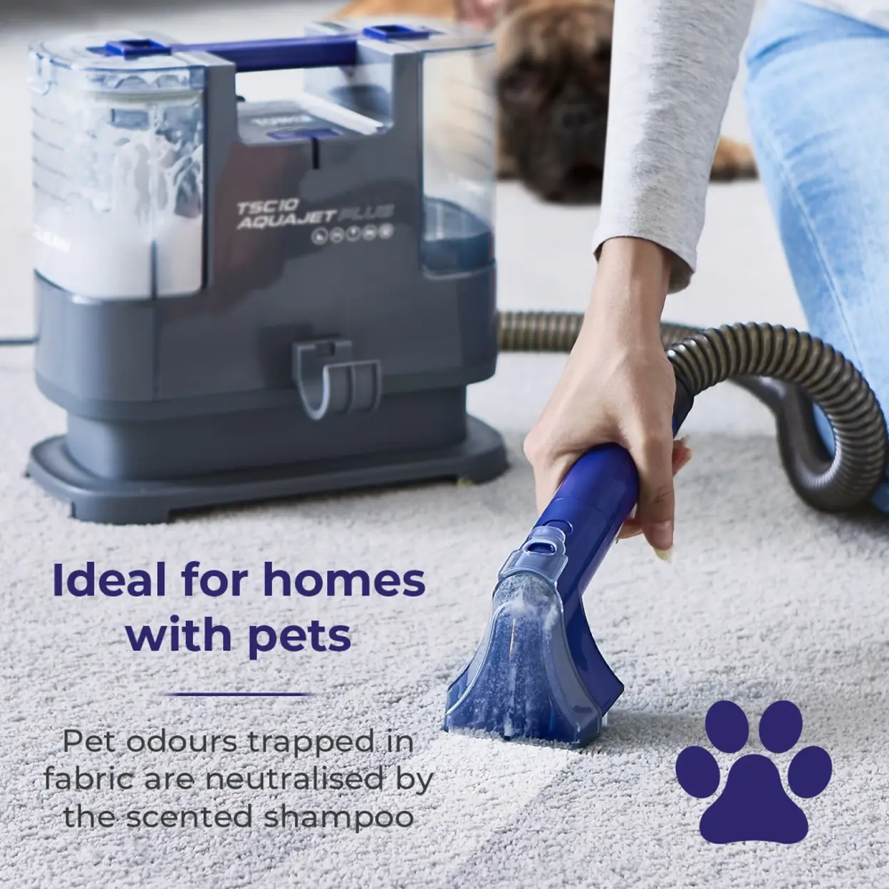 • Multi-purpose portable spot cleaner with a powerful 400W motor, designed for tackling spills and stains on carpets, upholstery, and car interiors.