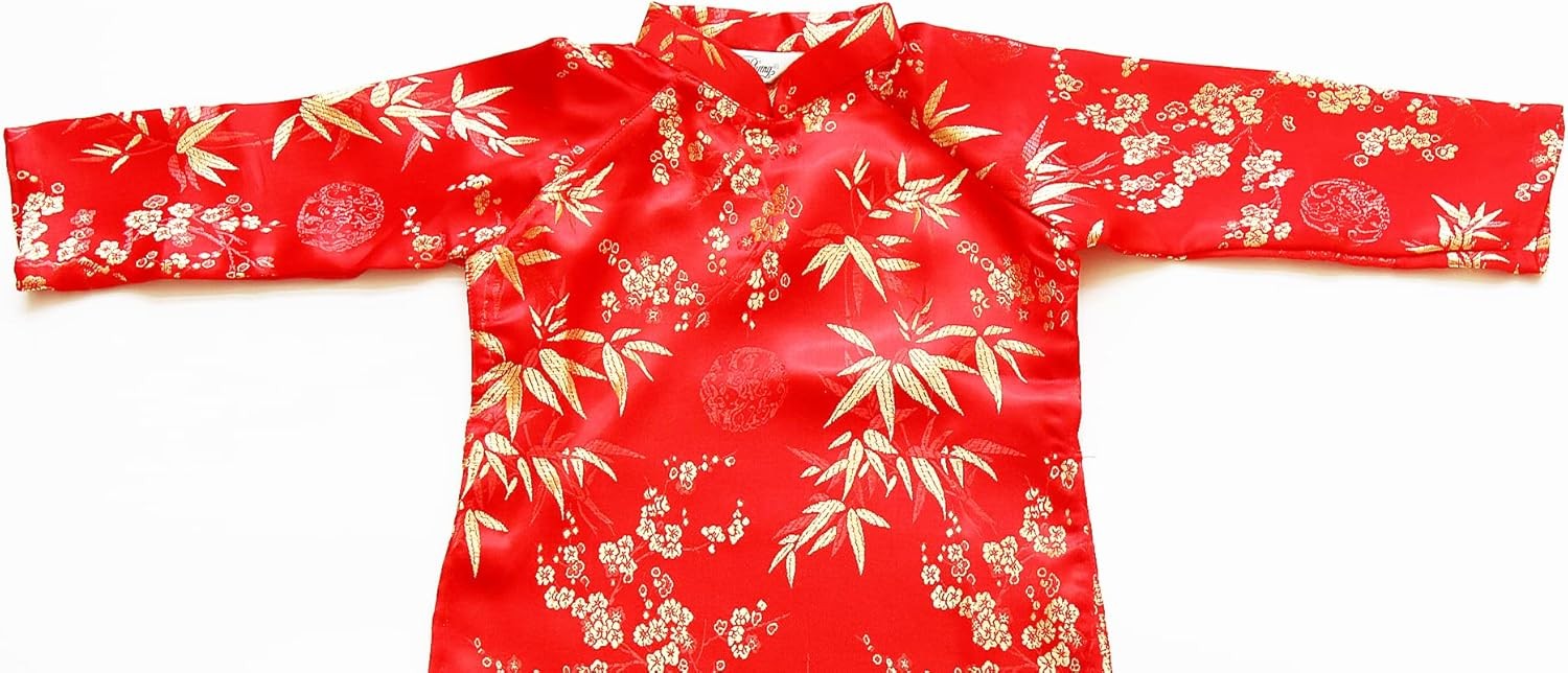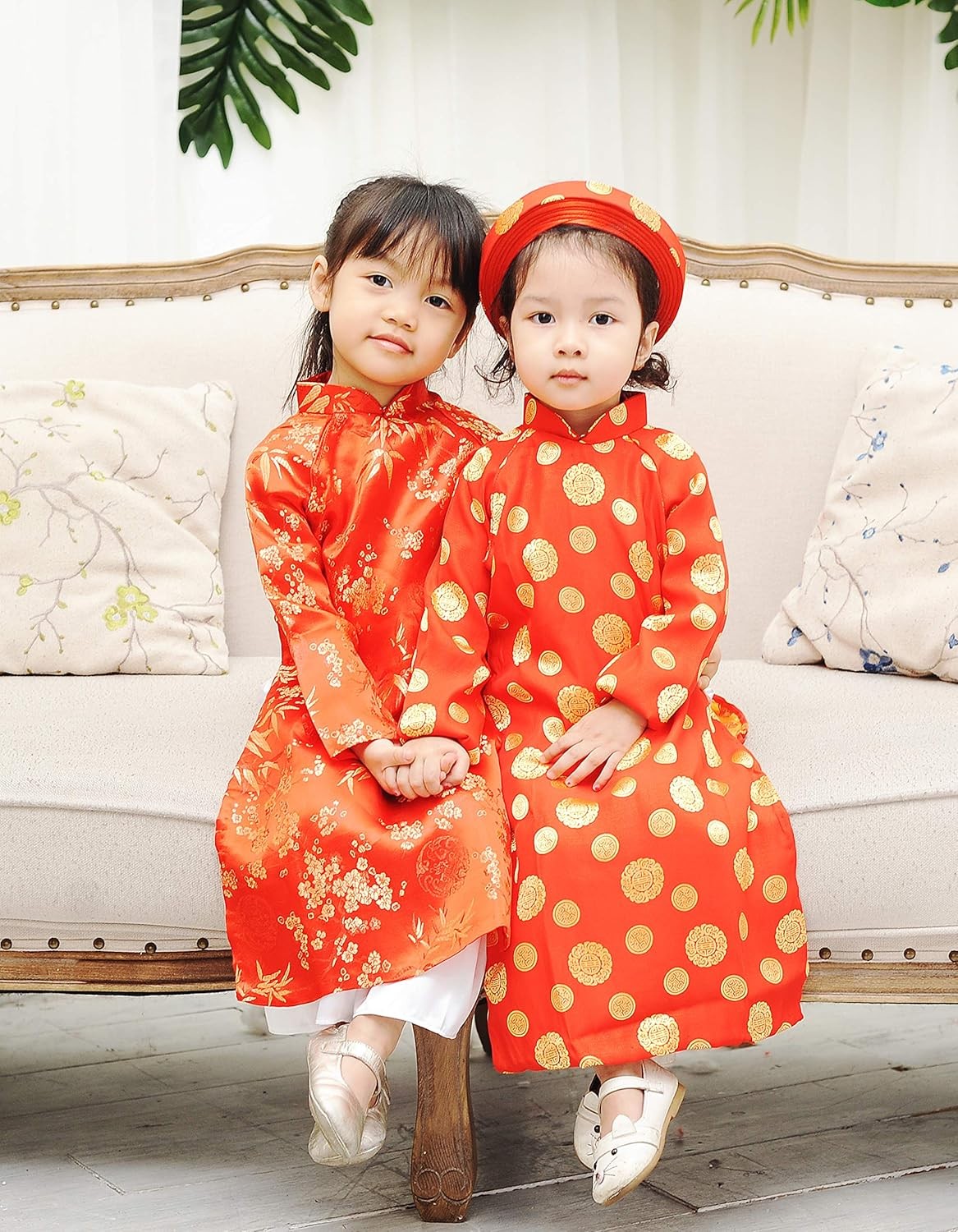 Vietnamese Traditional Dress for Children - Red Silk Dress with White Pants/Size#2 - Similar to Size 1T US
