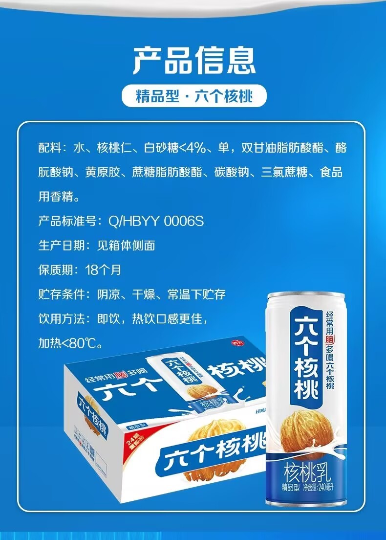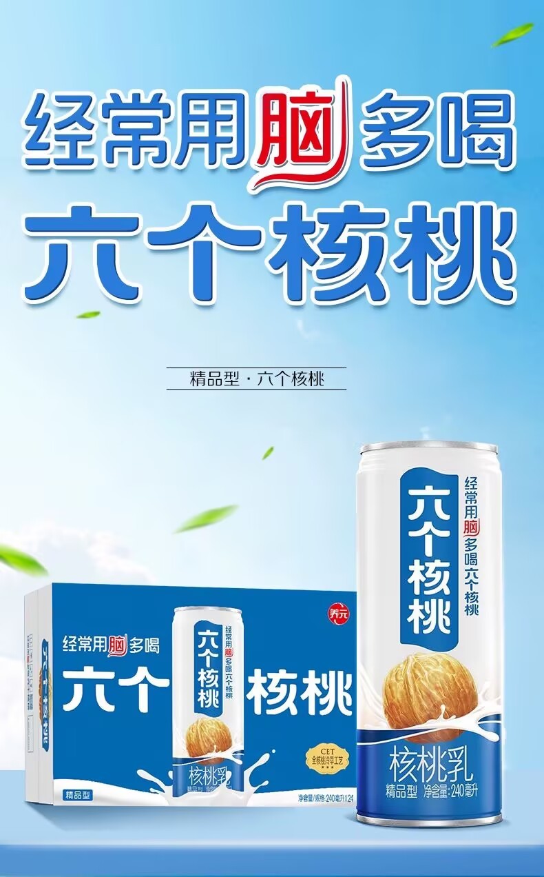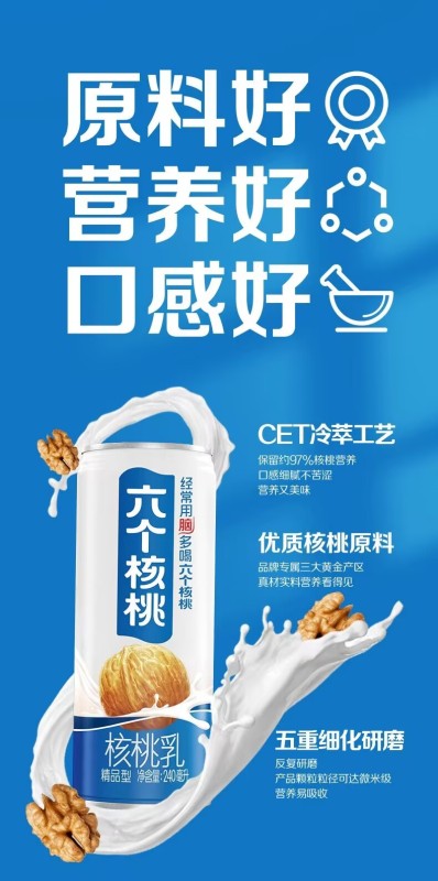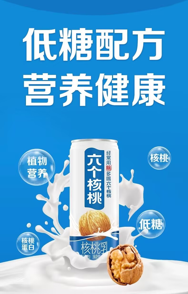 Yangyuan six walnuts and walnut milk high-quality vegetable protein drinks with low sugar content.